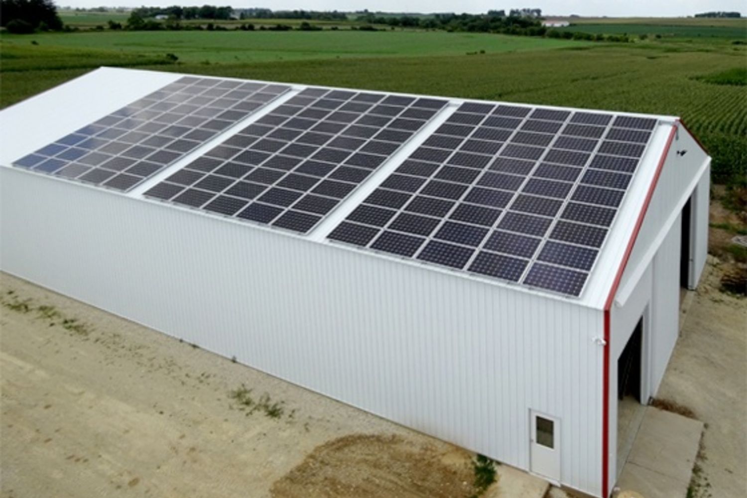 A large hog farm filling up their available roof space with all the solar panels they can fit!